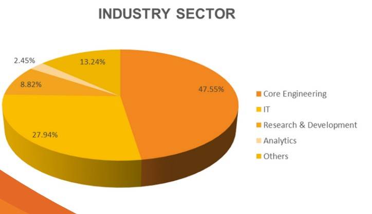 A majority of IIT Palakkad students were offered job roles in Core Engineering sector, followed by IT sector. The sector-wise distribution is presented in the image given below: