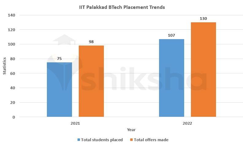 A sharp rise in the total offers made and students placed during IIT Palakkad BTech placement 2022 when compared with 2021. Check out the graph below for a clear understanding: