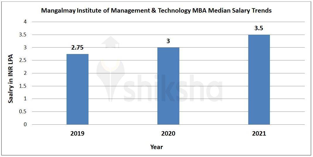 ccording to Mangalmay Institute of Management & Technology Management NIRF report 2022, a total of 72 students were placed out of 96 students during Mangalmay Institute of Management & Technology MBA placements 2021. Further, the median package offered during Mangalmay Institute of Management & Technology MBA placements 2021 stood at INR 3.5 LPA.