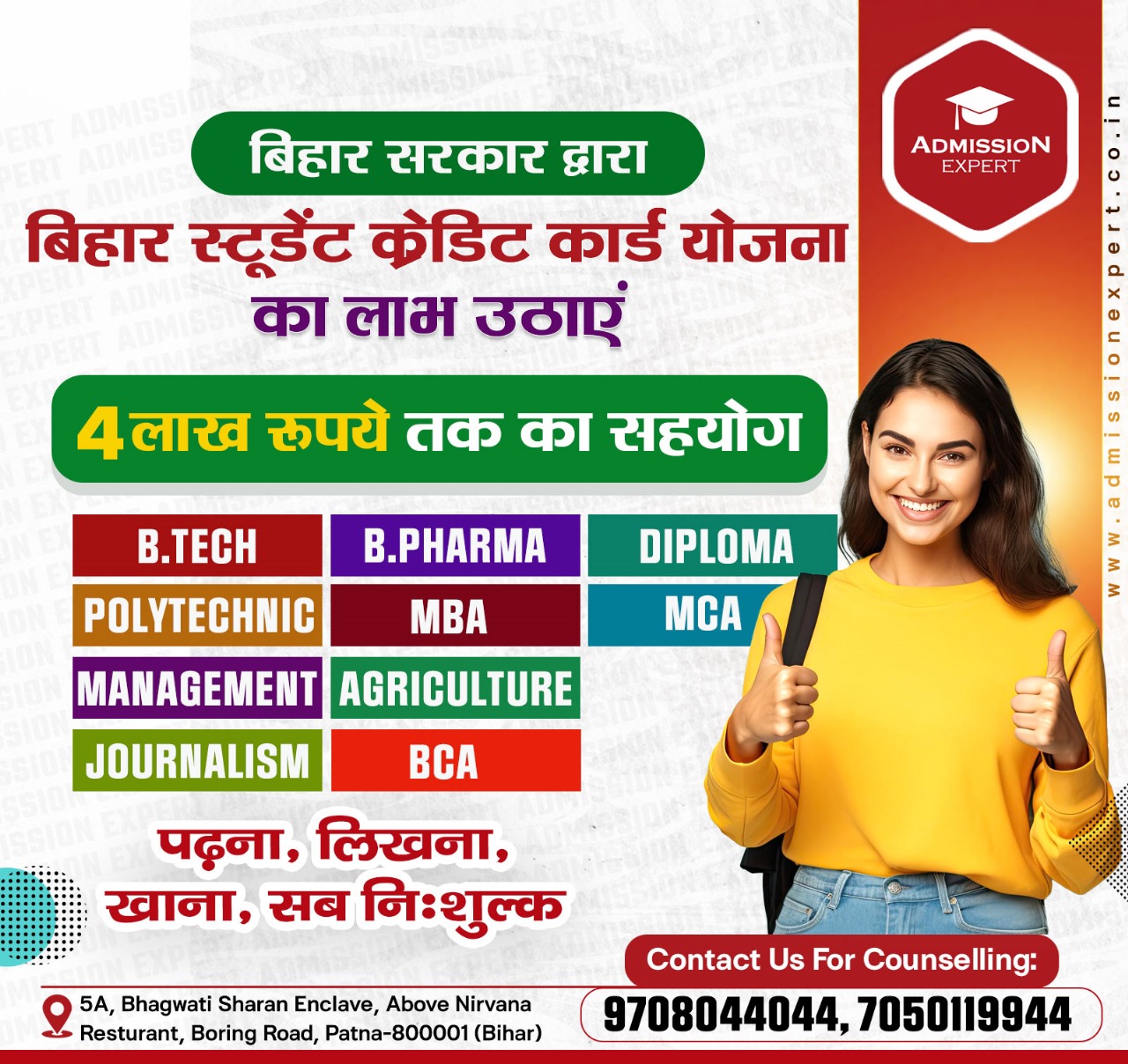 The Bihar Student Credit Card Scheme has been implemented with the aim of providing financial assistance to the 12th class passed students who are deprived of higher education due to economic reasons under Bihar's seven determinations developed under the state government's good governance program 2015-20. It has been decided to do this, so that students can get convenience in getting higher education. Under this scheme, the objective is to provide education loan to every willing student who has passed class 12 by linking with banks.