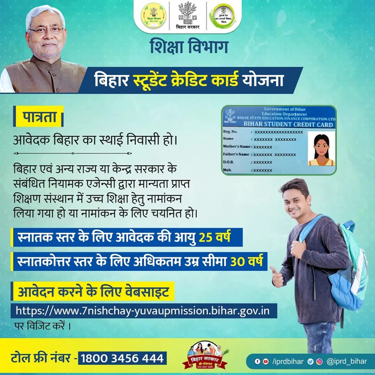 Students who have cleared their class 12th and fall under the Government of Bihar, and are unable to get admission in higher education because of financial constraints. The government of Bihar launched the Bihar Student Credit Card Scheme in Bihar only.